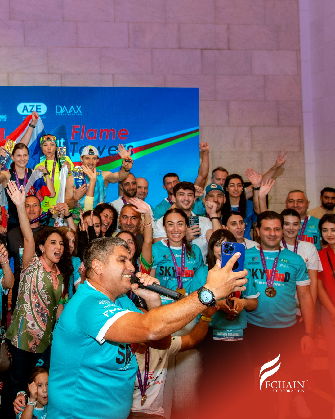 The race required participants to run up to the 32nd final floor of the Flame Towers, covering a vertical height of 160 meters. Alongside local and international professional athletes in the PRO category from Spain, Slovakia, Romania and Croatia, the FCHAIN team also took part in this exciting competition, completed the distance and earned a participant medal.